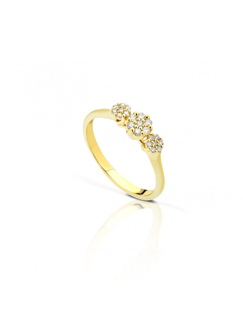 Anello in oro giallo 9kt con diamanti dal design unico ed elegante perfetto per ogni occasione. Disponibile in diverse misure. |