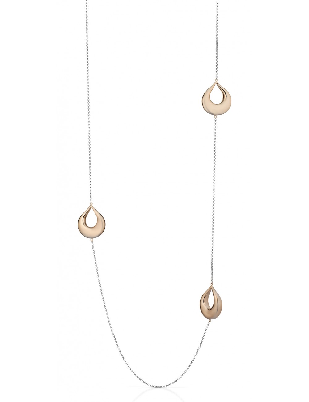 Collana chanel con elementi in argento rosa 925 e lunga 100 cm.