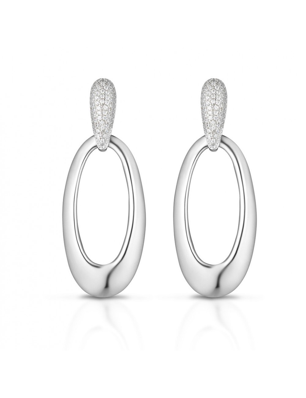 Orecchini con ovali zirconati in argento 925 e perno di chiusura a clip disponibile nei 3 colori di galvanica giallo, bianco e rosa.