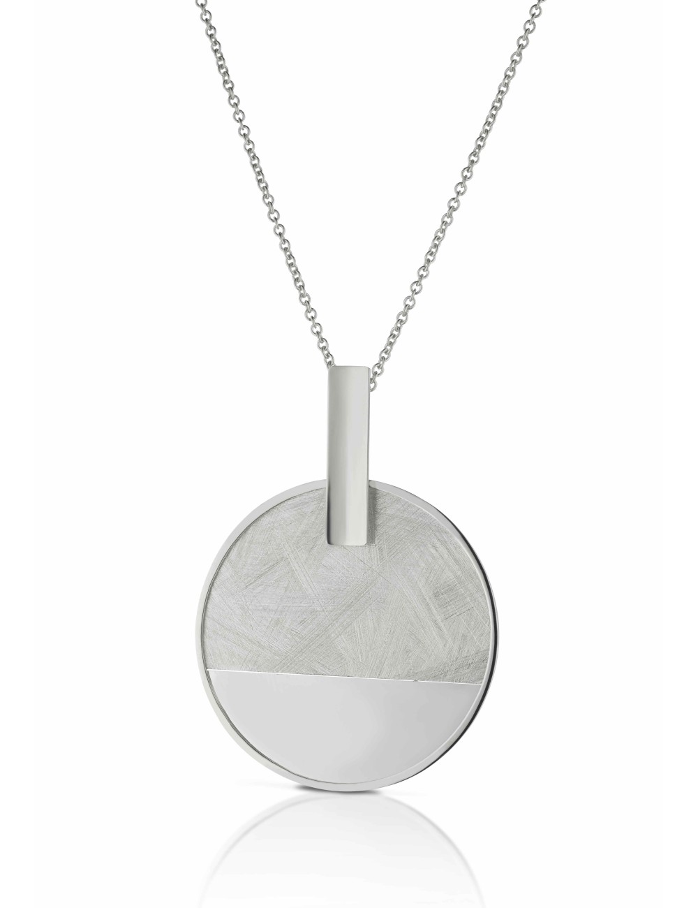 Collana con pendente lastra cerchio in argento 925 disponibile in diverse misure e realizzato nei 2 colori di galvanica giallo e bianco.