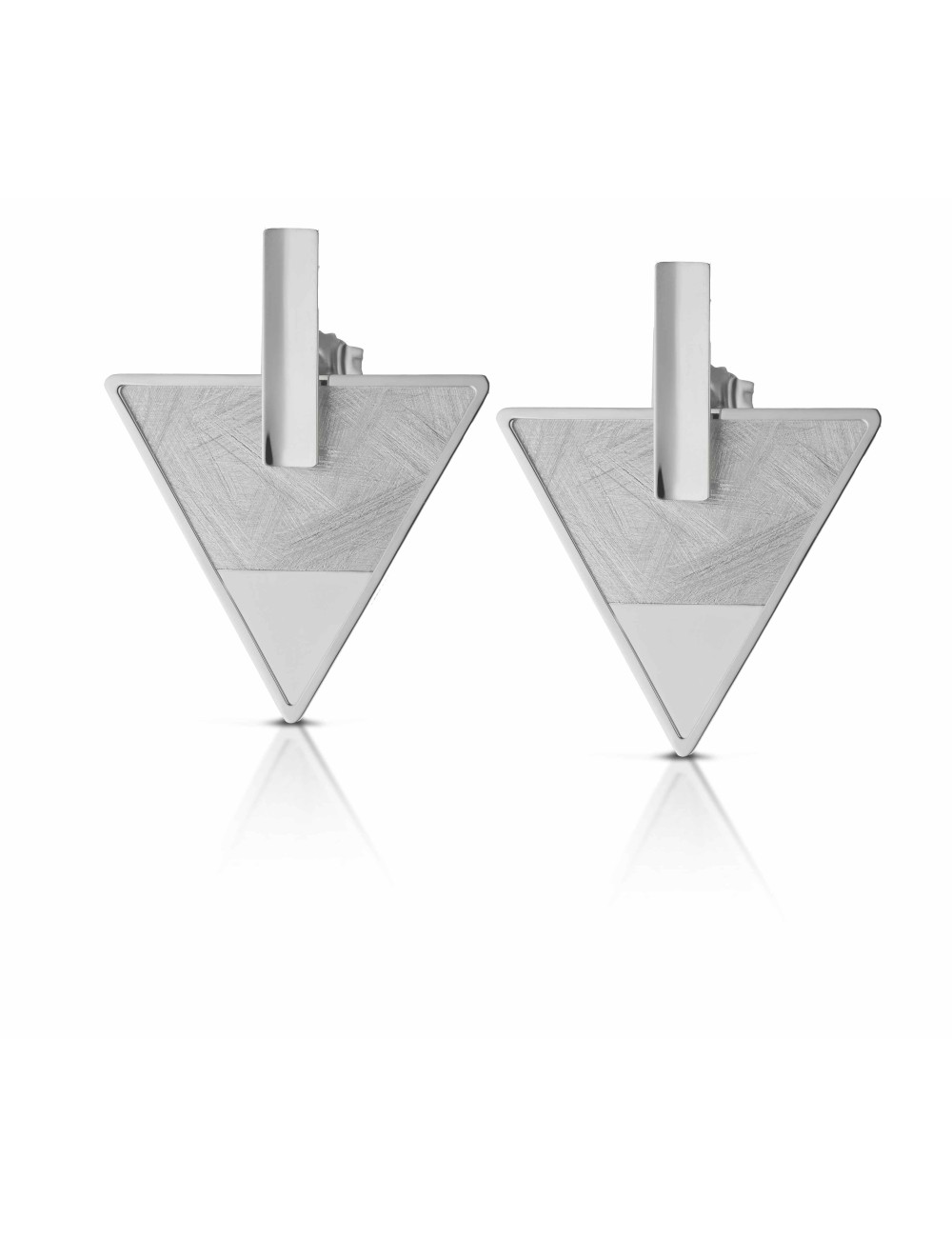 Orecchini con pendente lastra triangolo in argento 925 disponibili in diverse misure e realizzati nei 2 colori di galvanica giallo e bianco.