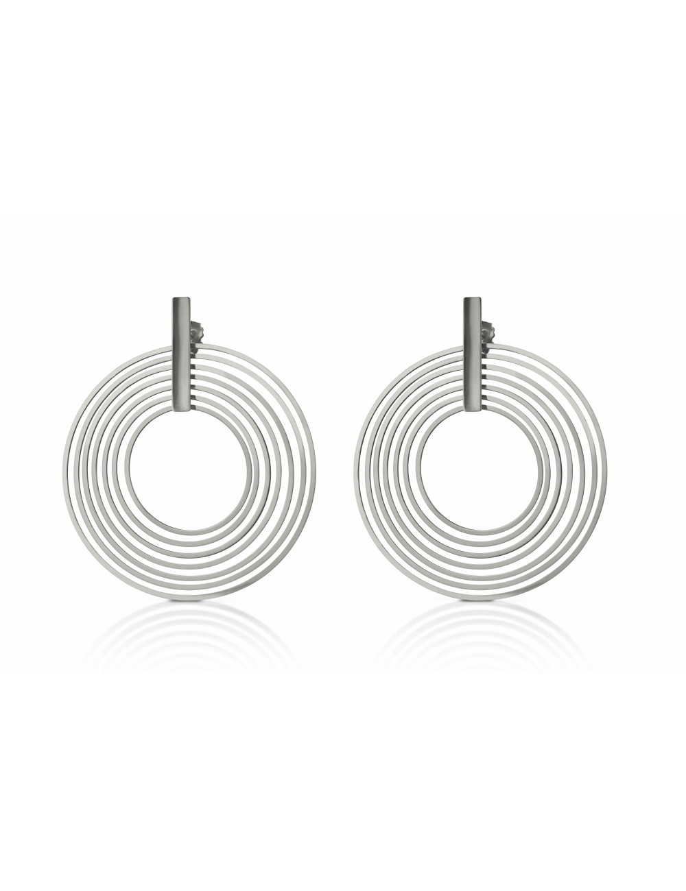 Orecchini con pendenti lastra multi cerchio in argento 925 disponibili nei 2 colori di galvanica giallo e bianco con chiusura a perno.