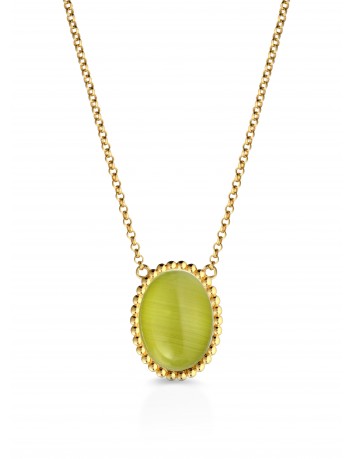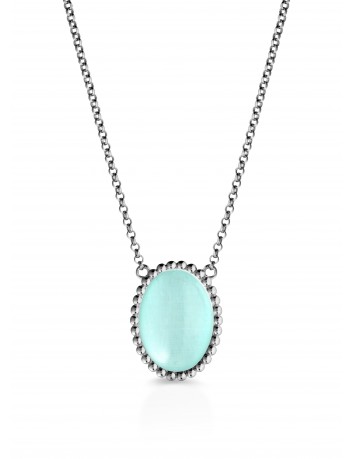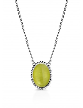 Collana pendente ovale in argento 925 con pietra naturale occhi di gatto disponibile in 4 colori.