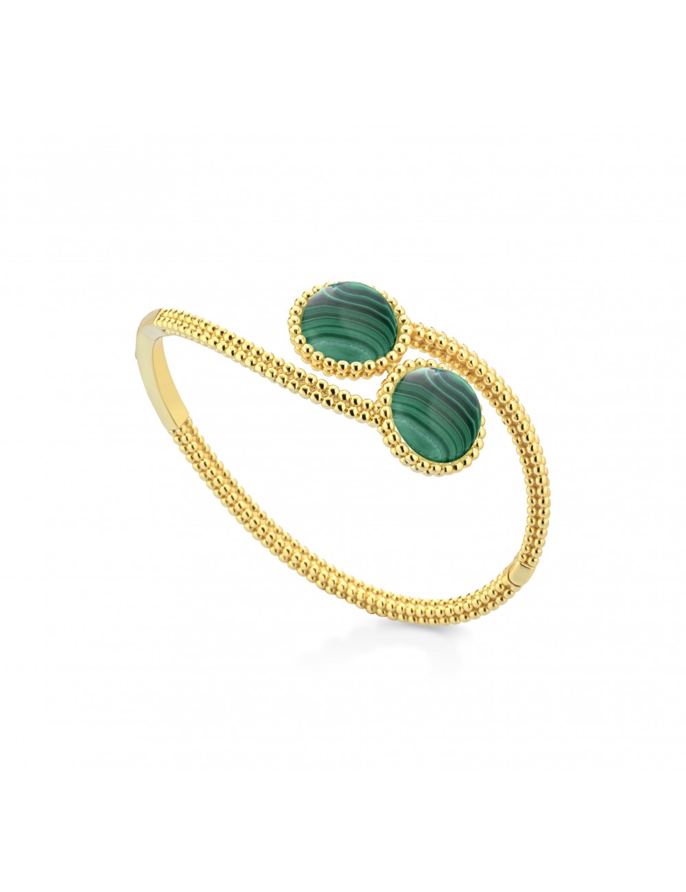 Bracciale contrarie rigido tondo in argento 925 con pietre naturali malachite disponibile nei 2 colori di galvanica giallo e anticato.